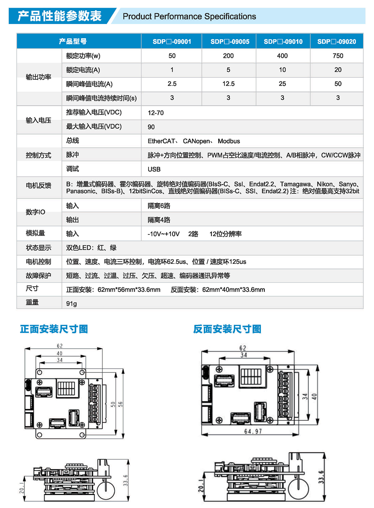 支持EtherCAT、CANopen、Modbus脉冲和模拟量控制;